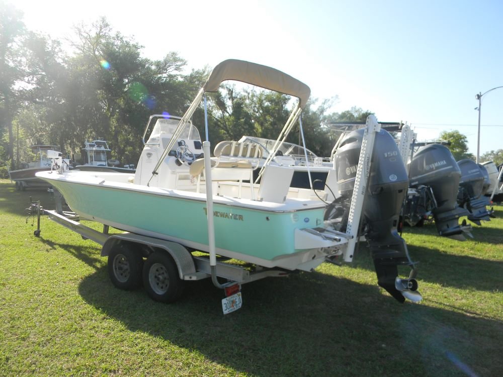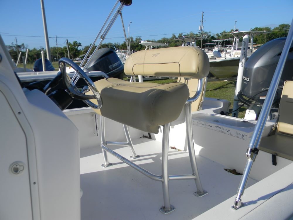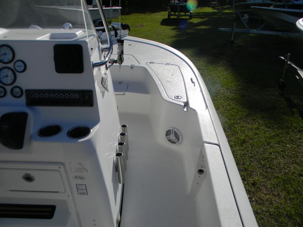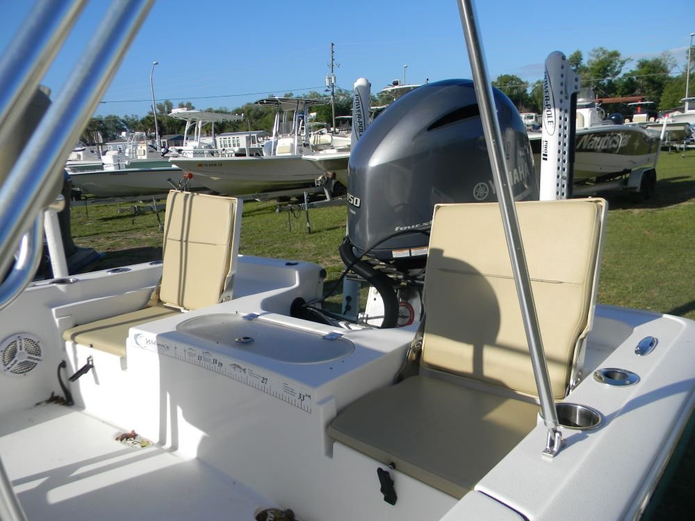 A dependable ride in both salt and freshwater, this Tidewater features the legendary F-150 Yamaha motor, Jack Plate, 2-power poles, hand-control trolling motor, VHF, stereo, bimini top, and included aluminum trailer!