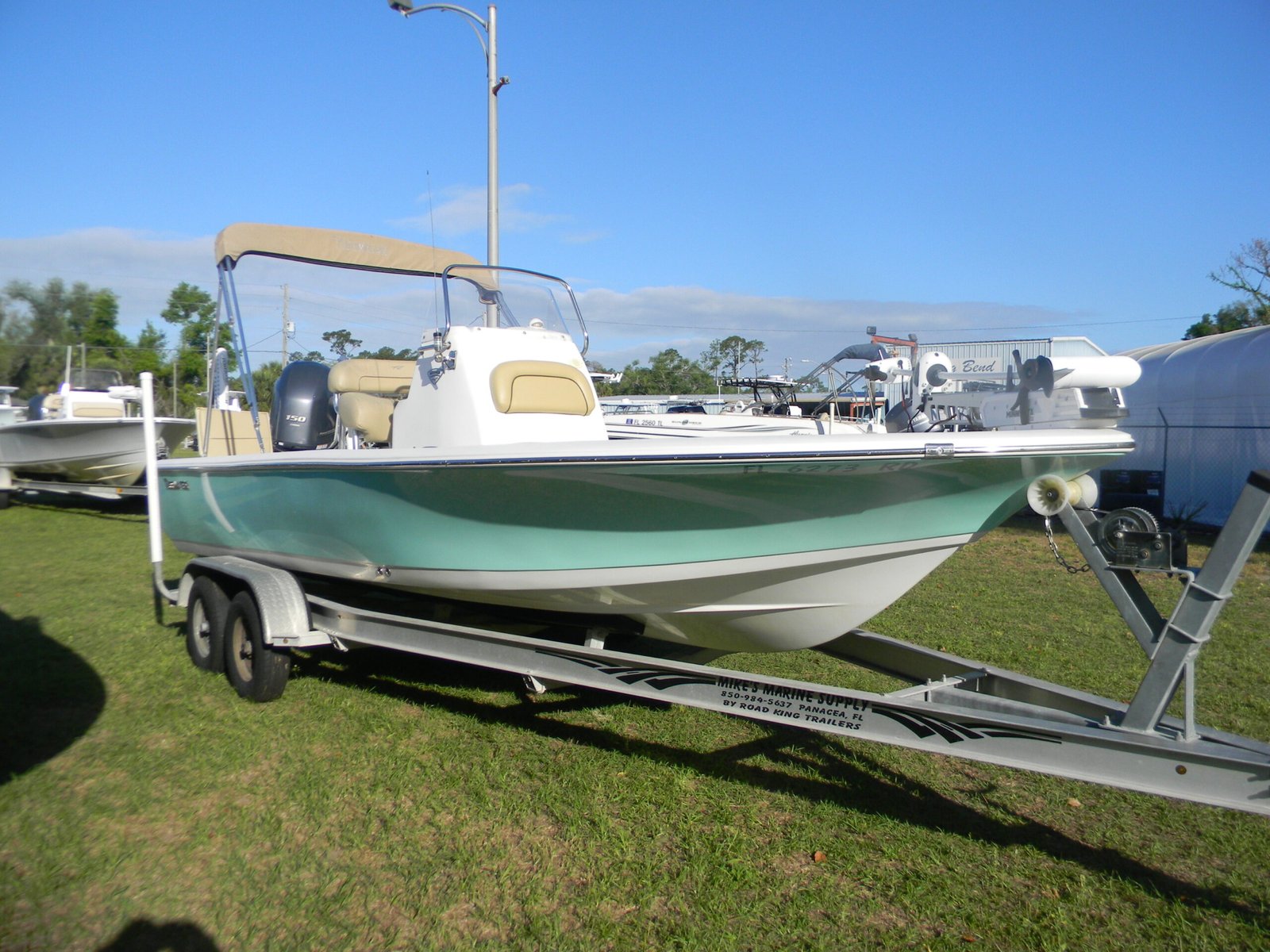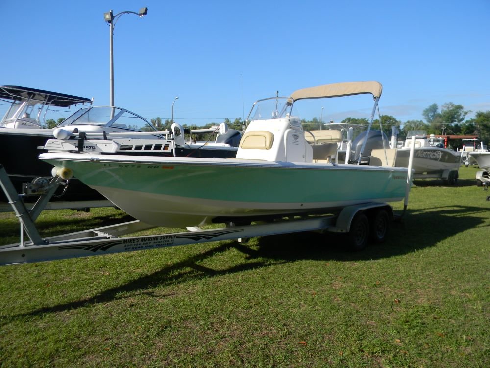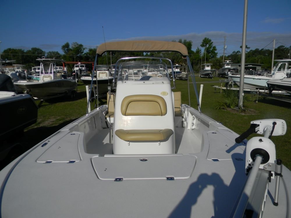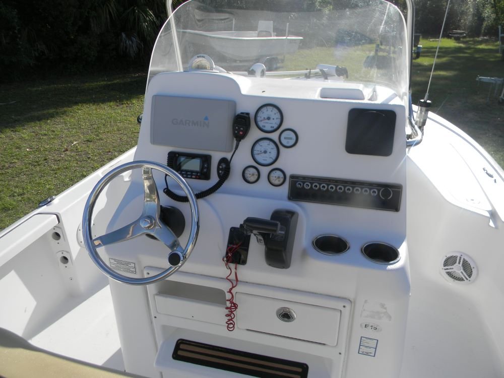 A dependable ride in both salt and freshwater, this Tidewater features the legendary F-150 Yamaha motor, Jack Plate, 2-power poles, hand-control trolling motor, VHF, stereo, bimini top, and included aluminum trailer!