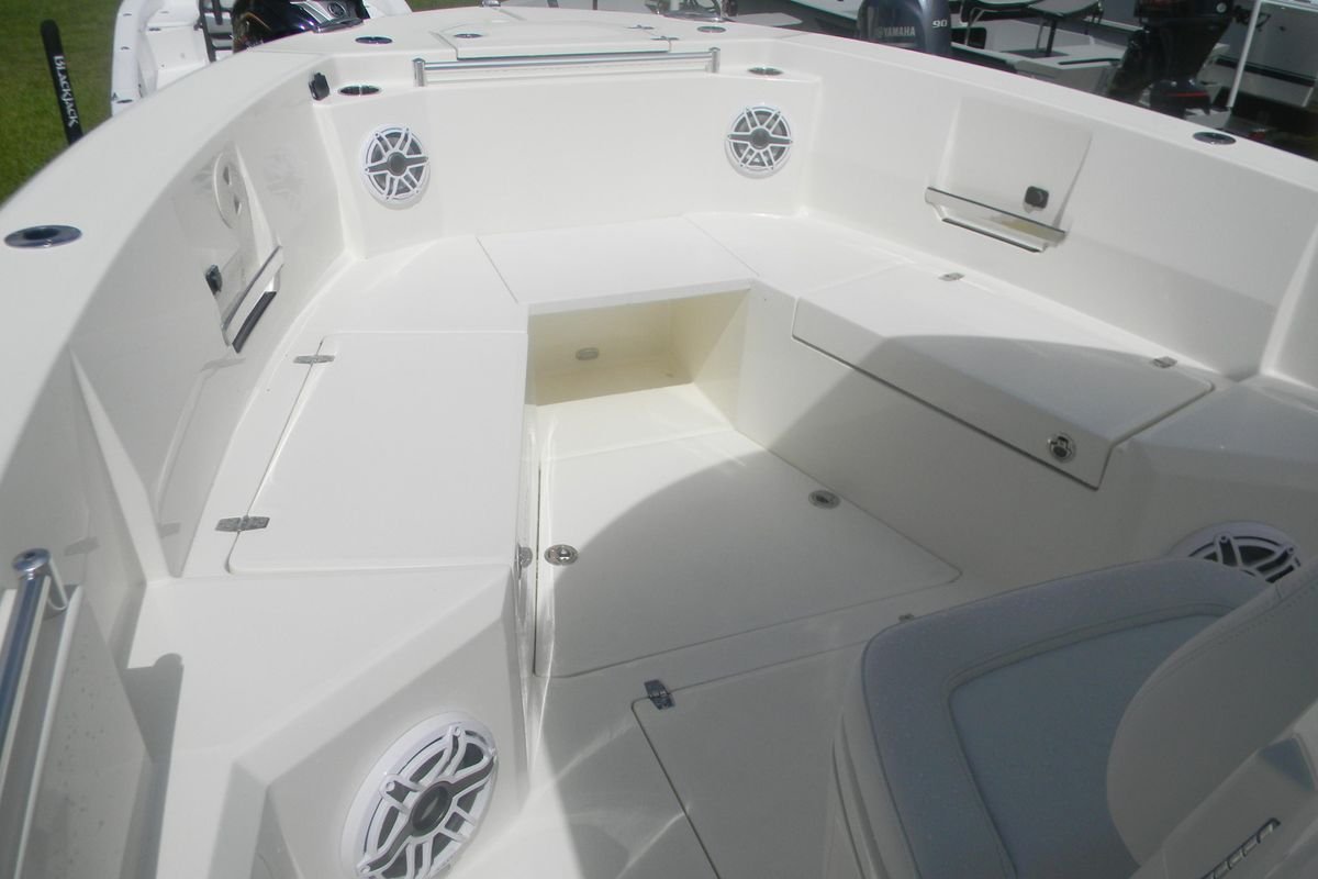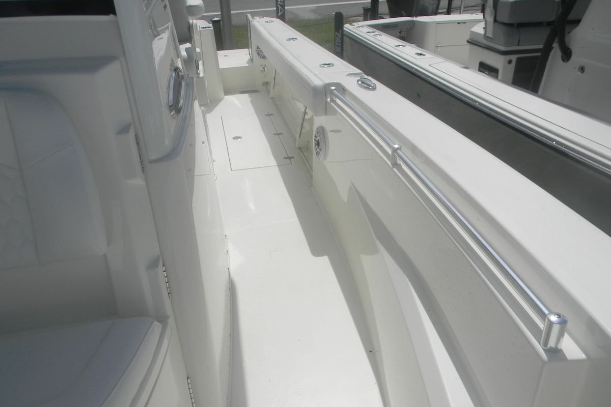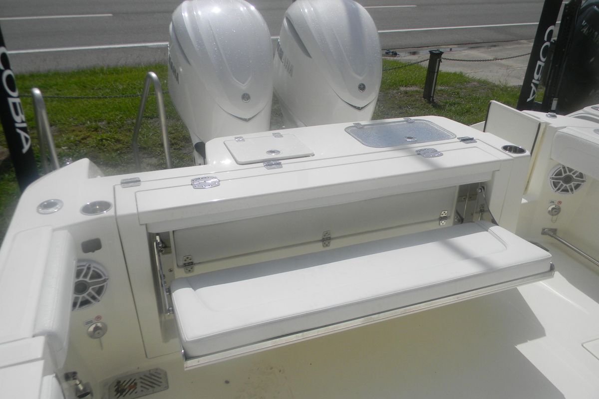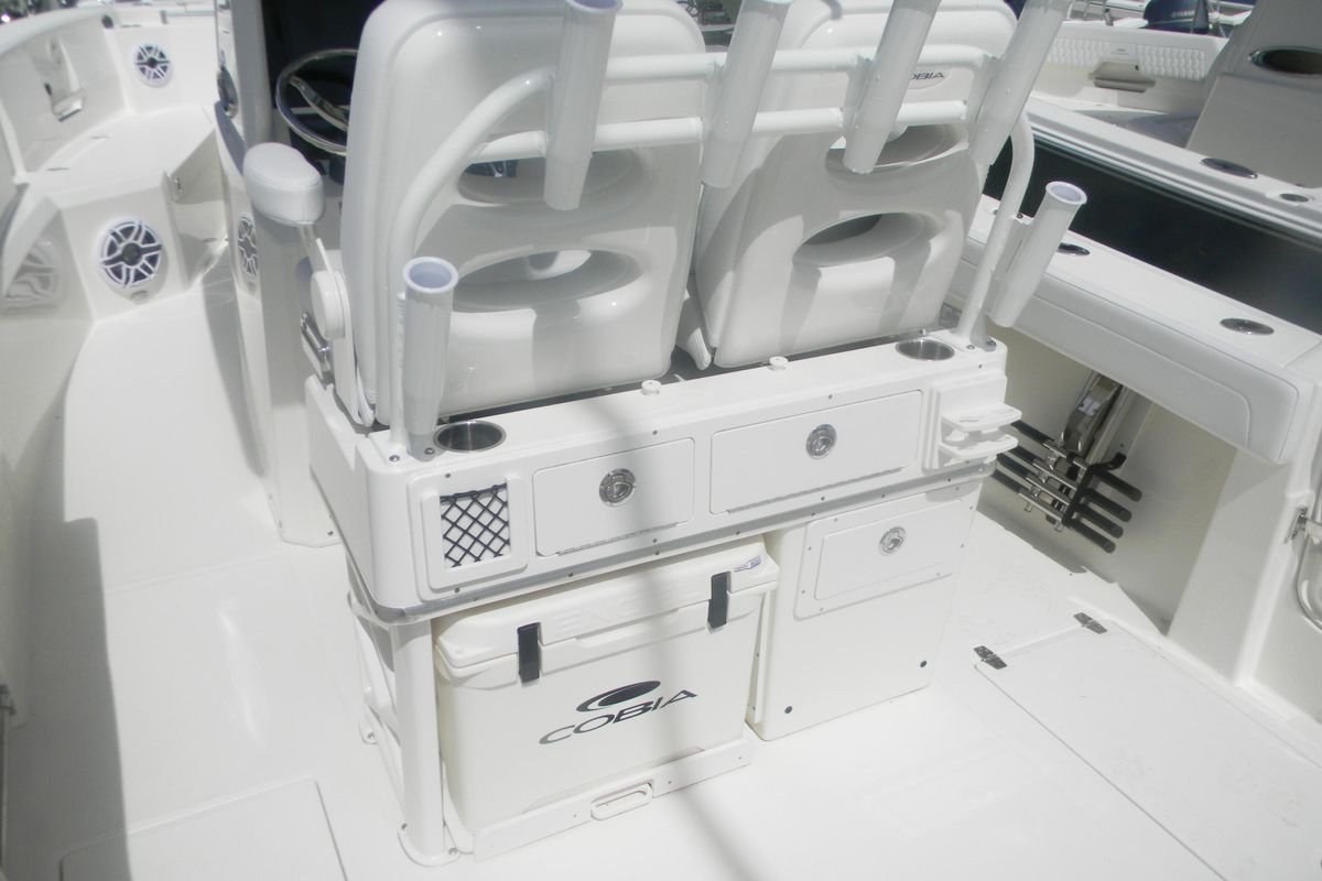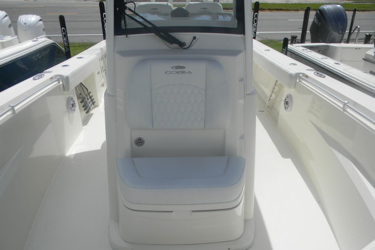 Your Cobia crew will love finding new locales to explore aboard the 285 CC. With an LOA of 28′ 5″”, a beam of 9′ 11″” and an intelligently designed layout, you’ll have plenty of room for all your on-water adventures. The helm can accommodate dual 16″” Garmin screens, so navigating is second nature. And everything you need is easily accessible with multiple helm seating storage configuration options and a tuna door that makes boarding a breeze. Dual fuel fills with 231-gallon capacity and twin engines with up to 700 maximum horsepower mean you can get out to your favorite fishing spot even faster. The bow table comes standard or you can upgrade to the electronically adjusted version and create the ultimate social zone with the push of a button. Spacious bow seating with the cushion package, forward console seat with integrated 57.5 quart cooler and the hideaway aft bench seat provide plenty of room for your crew to spread out. The innovative in-floor fish box can be partitioned to create a cooler that can be accessed from the water through the side dive door once you hit the sandbar. Additional upgrade options include JL Audio sound system packages with 10″” subwoofers and up to 10 speakers, an integrated hardtop frame with glass windshield, wiper and vent, a Seakeeper 1 and a Garmin Force Kraken trolling motor. Any way you configure it, with a Cobia, you can have it all!”