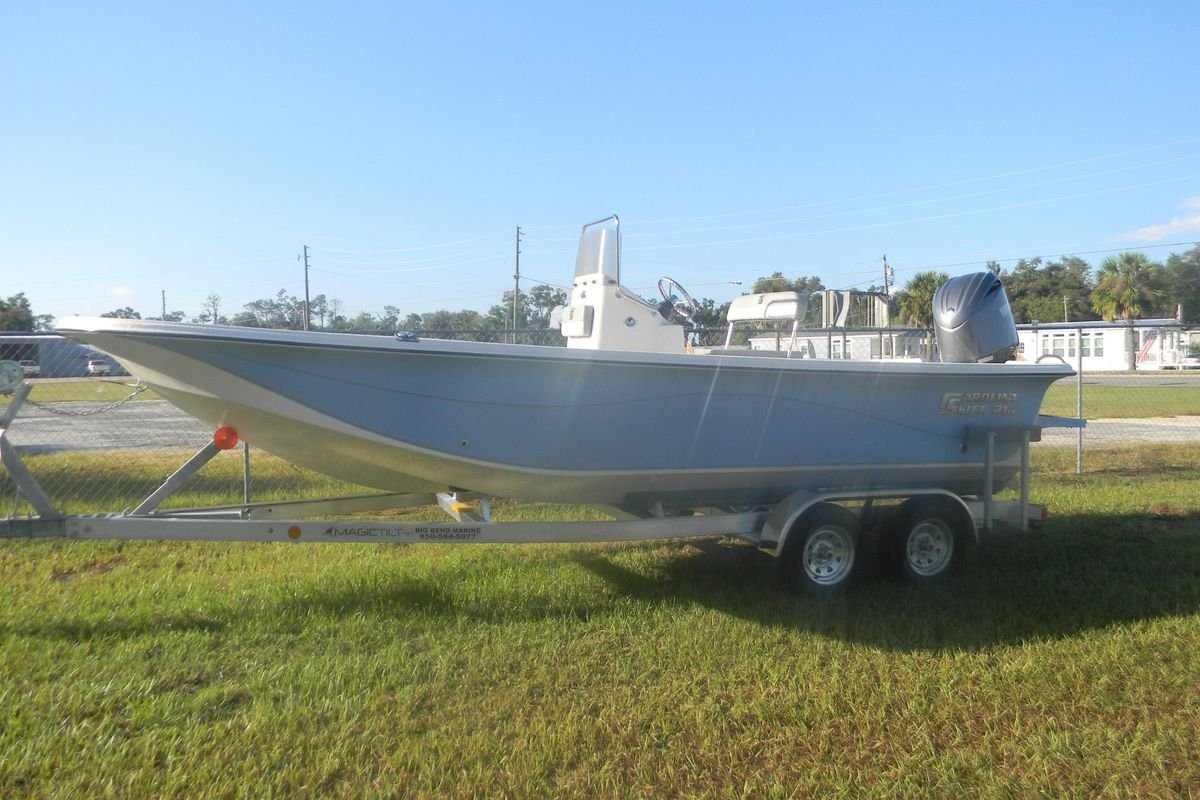 Introducing the 2026 Carolina Skiff 21 LS, a remarkable new skiff designed for versatility and performance. With an overall length of 21 feet, this boat is crafted from durable fiberglass, ensuring both strength and a smooth ride on the water. Powered by a robust Yamaha F-150XD engine, delivering an impressive 150 horsepower, it promises exhilarating adventures and reliable performance. The stainless steel propeller enhances efficiency, making it an excellent choice for various water activities. This skiff is perfect for those seeking a reliable vessel for fishing, cruising, or leisurely outings. Its sleek design and modern features make it a standout choice for boating enthusiasts. The Carolina Skiff 21 LS combines quality craftsmanship with functionality, ensuring an enjoyable experience on the water. Embrace the freedom of the open sea with this exceptional boat, ready to create unforgettable memories.